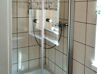 Dem Schlafzimmer angeschlossen ist das Duschbad. Das WC liegt separat.