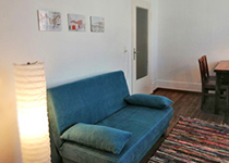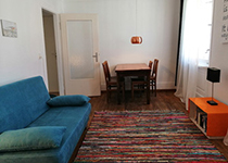 Das Wohnzimmer hat einen Tisch mit 4 Stühlen und ein Schlafsofa (1,40 * 2,00m).
